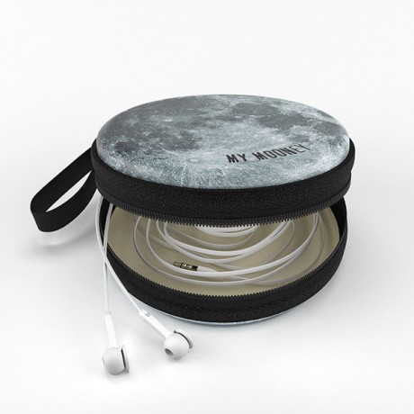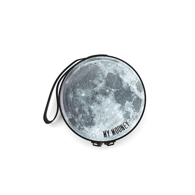 Llévate la luna puesta con este monedero rígido y metálico. Lleva una cinta para colgar y cierre de cremallera