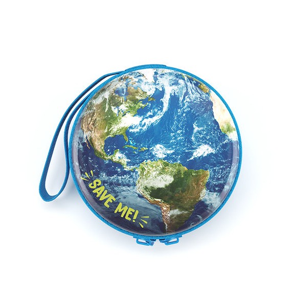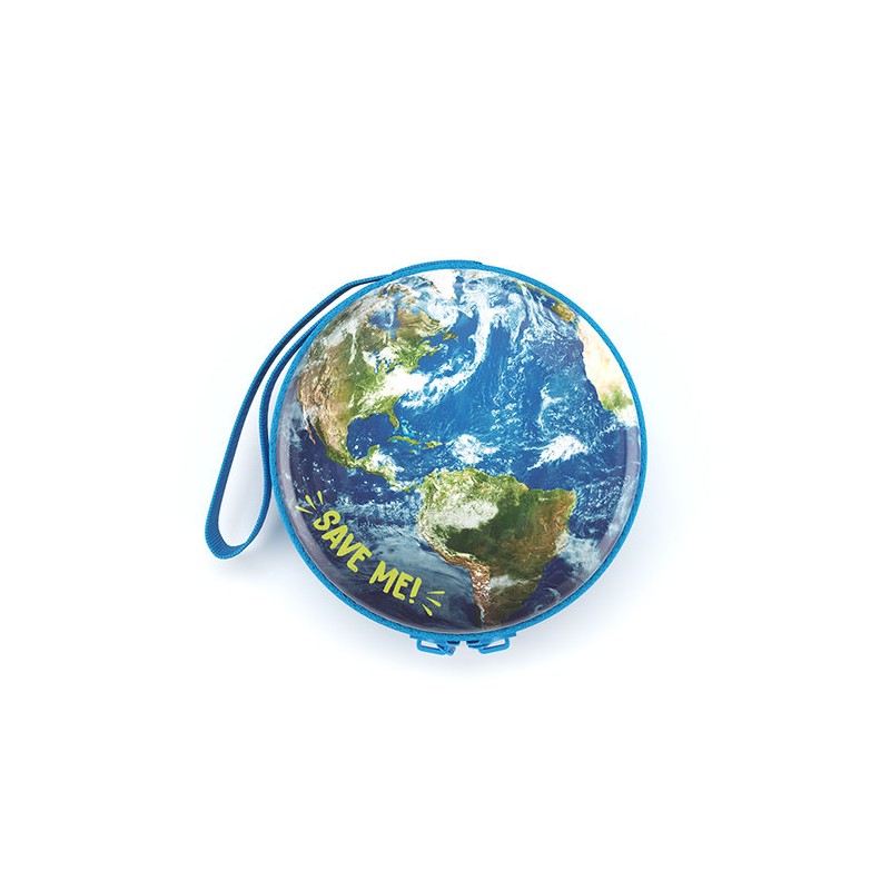 Misión: salvar la Tierra. Apuesta por ello con este monedero rígido y metálico. Lleva una cinta para colgar y cierre de cremallera