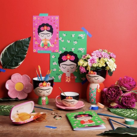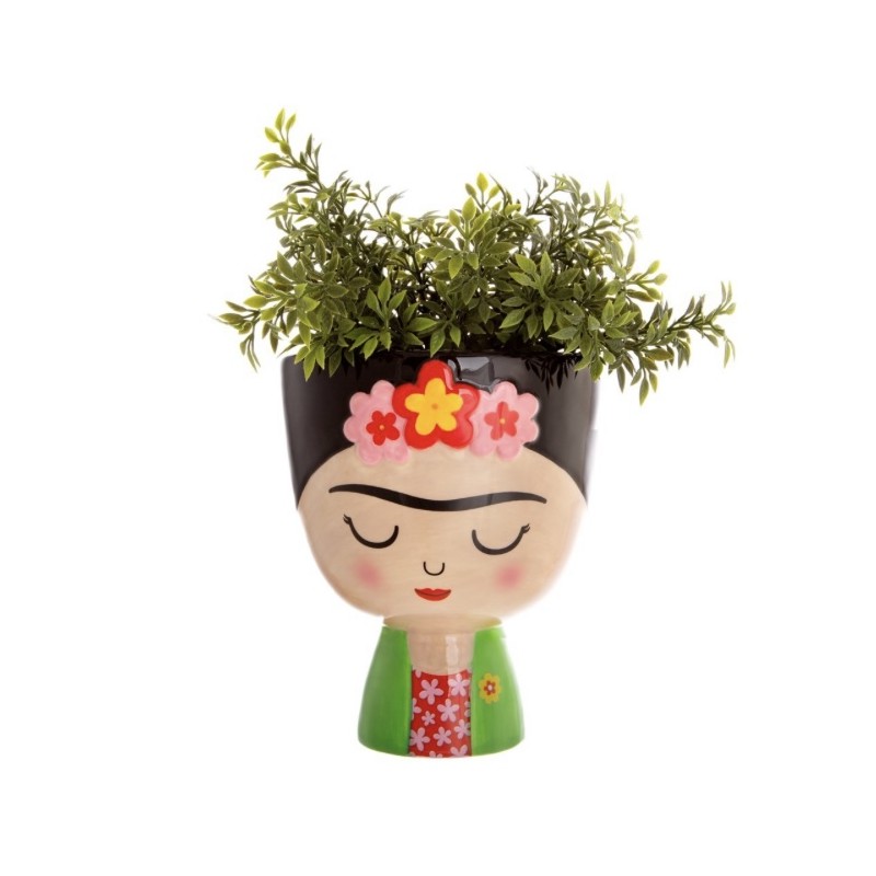 Inspirándose en la popular artista Frida Kahlo, esta hermosa maceta es maravillosa para exhibir plantas de tamaño mediano. Con una combinación de colores con toques de rojo, esta belleza botánica sigue la forma de un cuerpo y muestra las características icónicas de Frida.