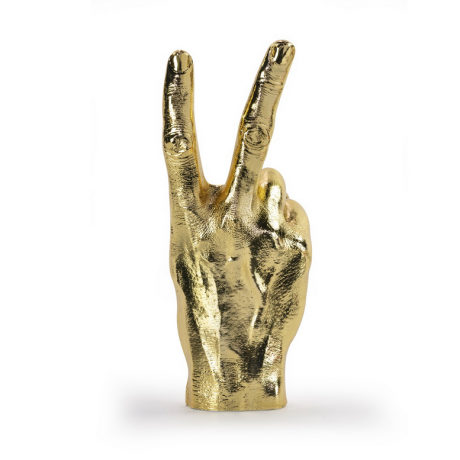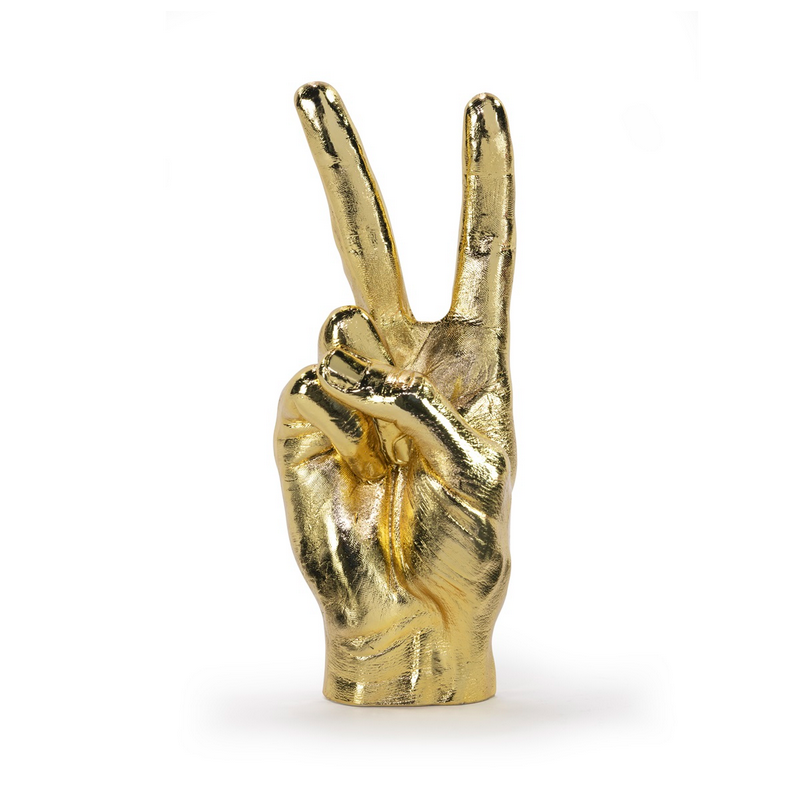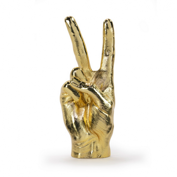 Escultura de resina dorada, representando el simbolo de la paz. un regalo con una declaranción de intenciones... o simpelmente un objeto decorativo. Se puede utilizar como pisapapeles o joyero.