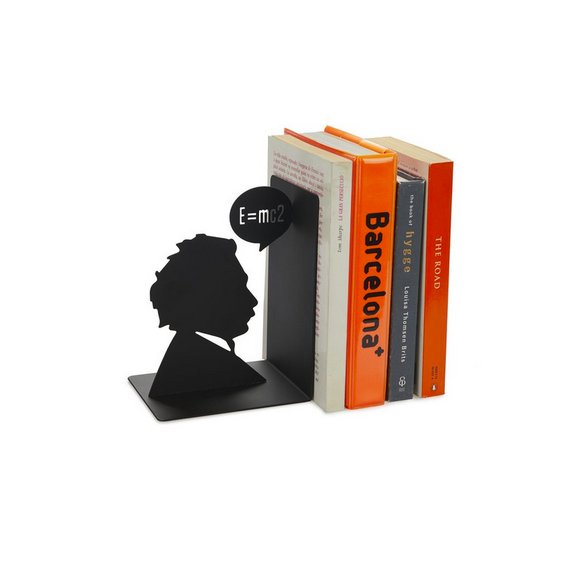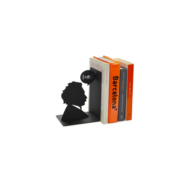 Protege tus libros de caídas con este soporte "Einstein" fabricado en hierro de color negro.