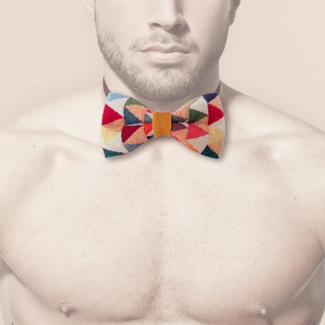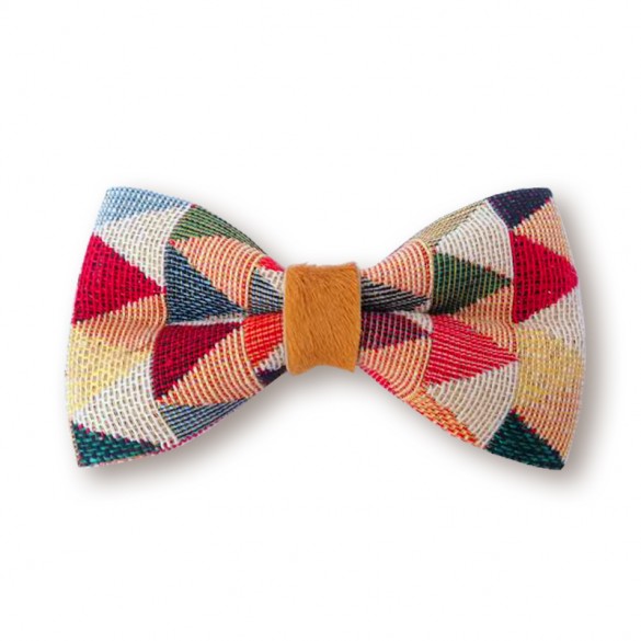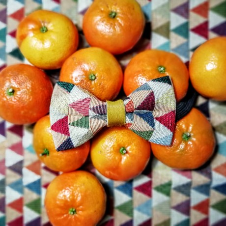 Pajarita Sagrado creada artesanalmente a partir de tejido reutilizados, donde el "Slow" es uno de sus recursos más valorados, la recuperación de tejidos le confiere un valor inigualable otorgándole la etiqueta de "ecofriendly".