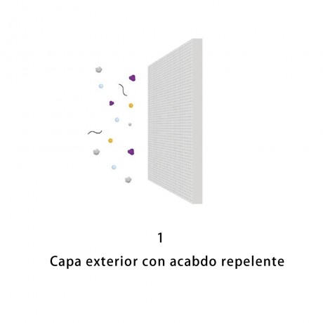 - Capa interior con acabado repelente más un tratamiento antibacteriano para evitar el alojamiento y la proliferación del virus
