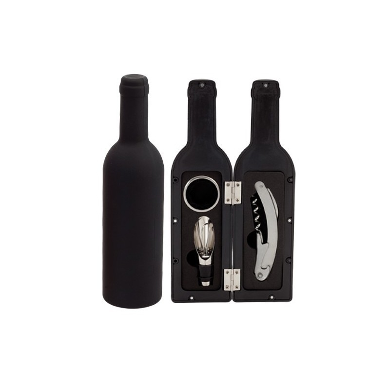 Este set para amantes del vino incluye todo lo necesario para ser el regalo perfecto. El set incluye una caja con forma de botella de vino.