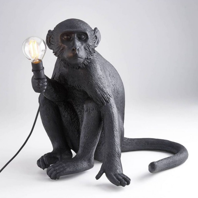 MONKEY es una lámpara de interior con forma de mono y acabado en color negro, diseñada por Marcantonio Raimondi Malerba para Seletti.