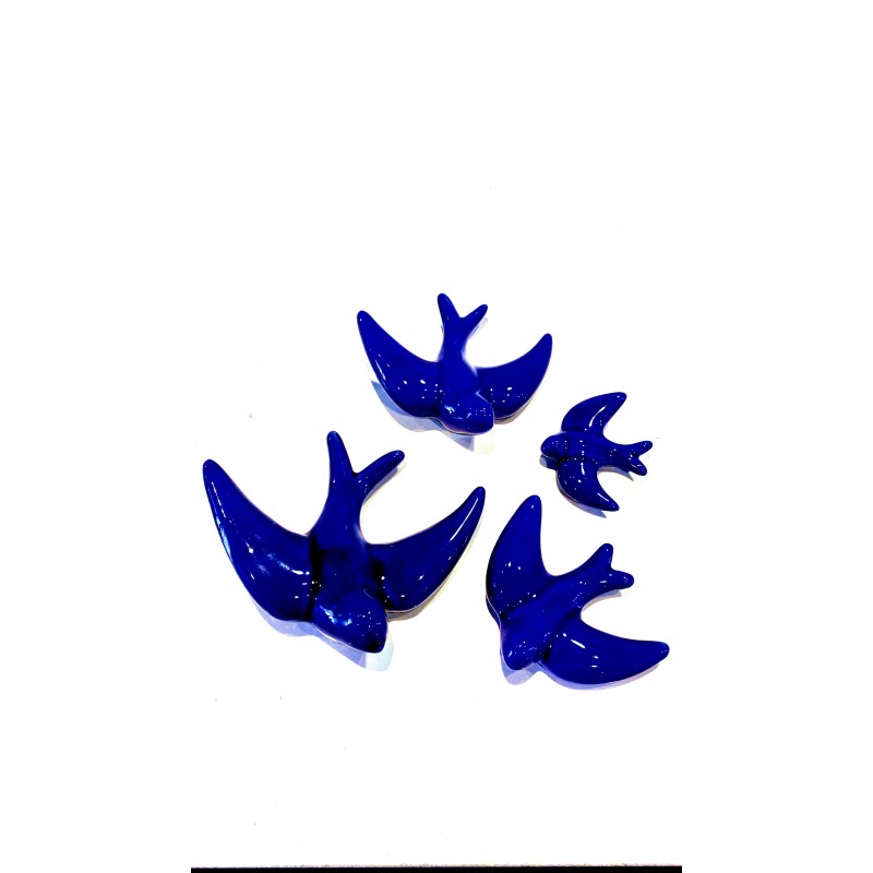 Set de cuatro golondrinas de cerámica policromadas en azul Klein