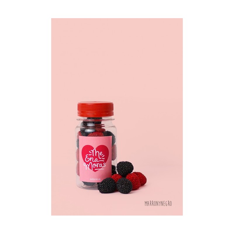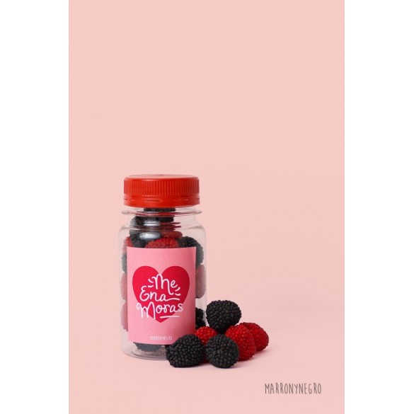 Pildorero Me enamoras, con el que sorprender a esa persona que te tiene enamorada. Con gominolas de mini moras que simpre se disfrutan de tu mejor compañía.