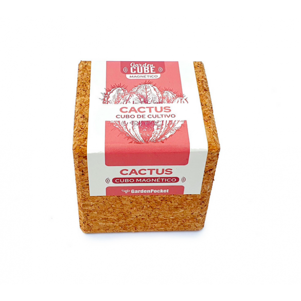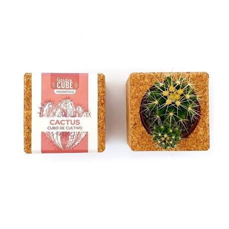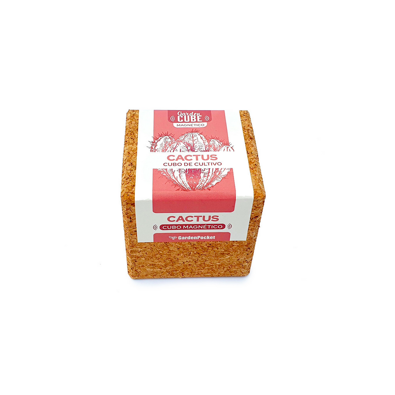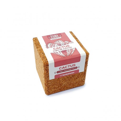Cubo de corcho con imán para iniciar el cultivo de cactus. Siente la experiencia de cultivar de una manera sencilla y natural.
