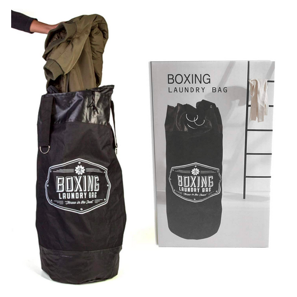 Cesta de ropa en forma de saco de boxeo. Para los apasionados a este deporte, les vendría muy bien tener una en casa.