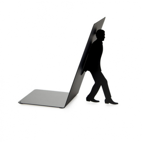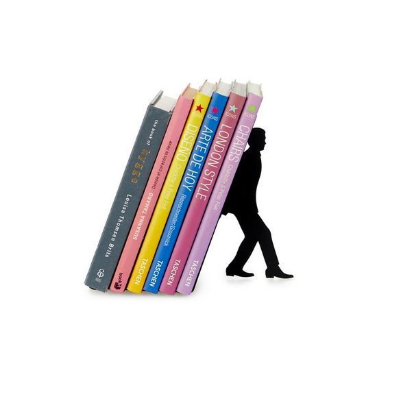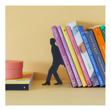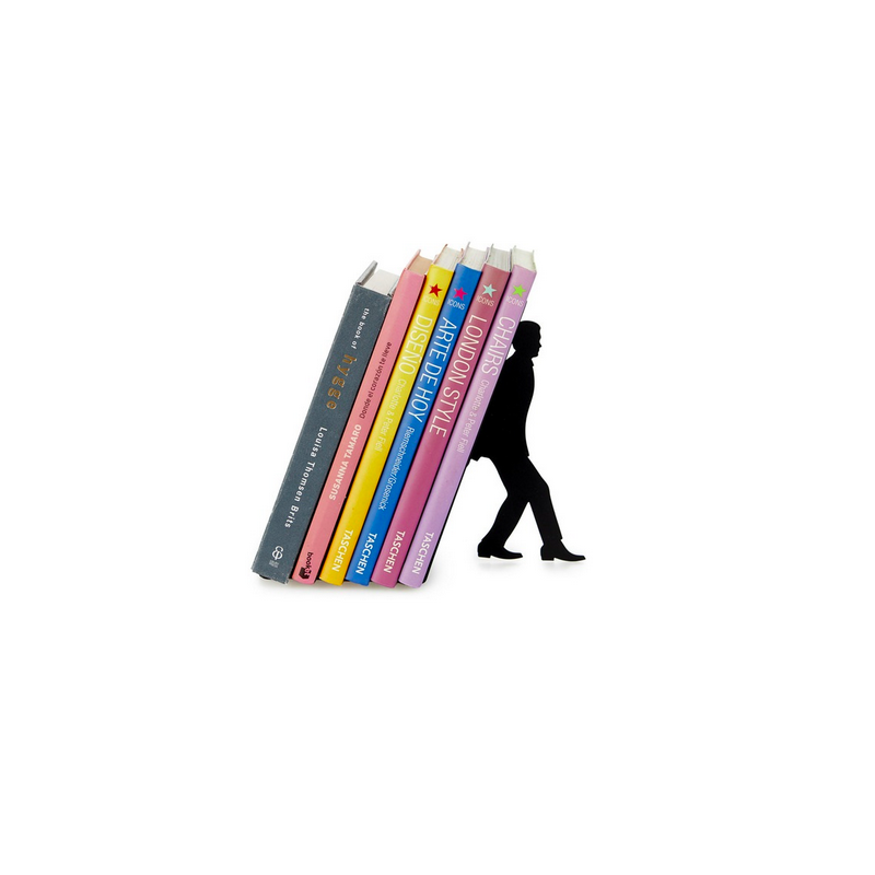 Protege tus libros de caídas con este soporte "To many books" fabricado en hierro de color negro.